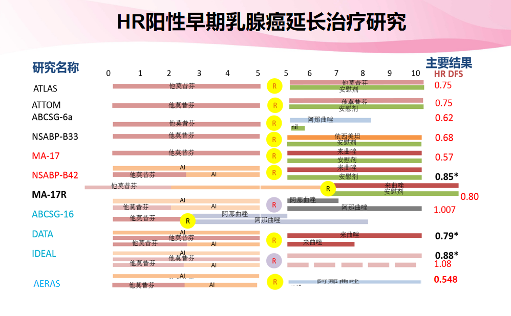 ▲HR阳性早期乳腺癌延长内分泌治疗的试验汇总