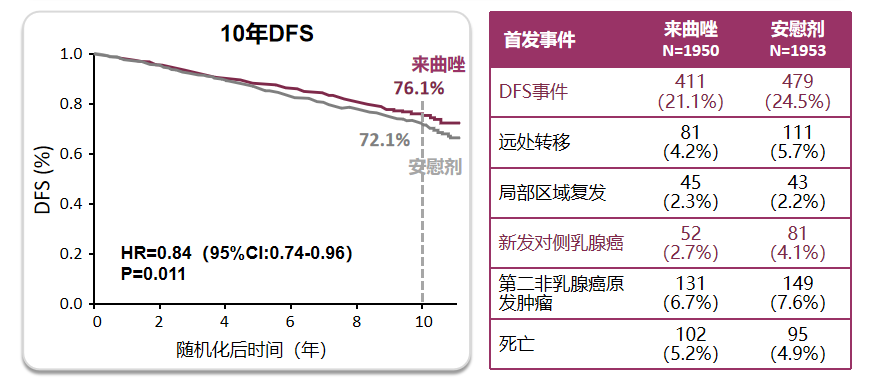 综上所述,NSABP B-42研究7年和10年的随访数据,可见其一脉相承的获益趋势,提示AI延长治疗能带来生存获益。在AI药物选择中,对需要延长的高危患者,优先考虑强效抑酶药物,并注意不良反应的管理和干预。