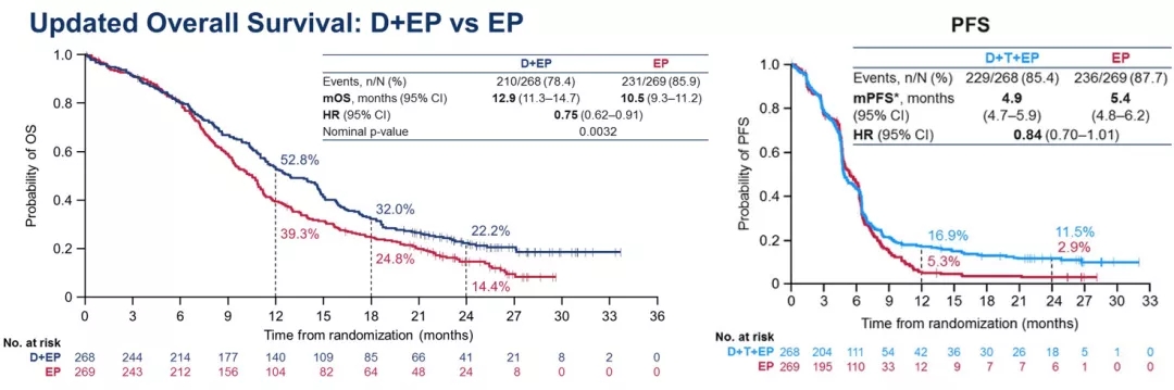 CASPIAN研究中D+EP组OS, D+T+EP组PFS