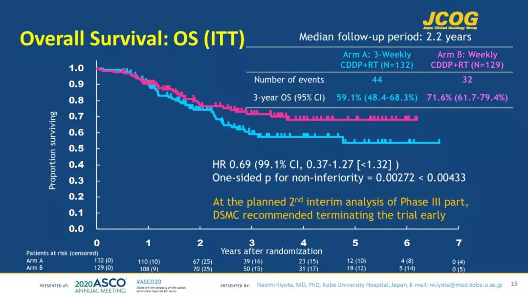 本研究是关于高危的头颈部鳞癌手术后同步放化疗的顺铂3周方案与周方案的比较,是在日本进行的多中心研究。我个人认为这项研究对中国医生有特别的启发作用。