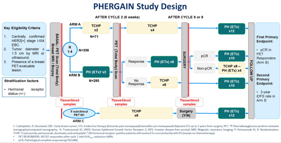 徐莹莹教授:在今年的ASCO会议上,您报告的PHERGAIN研究引起了广泛的关注,为HER2阳性乳腺癌新辅助降阶治疗提供了新的思路,即对一些双靶抗HER2治疗敏感的患者,通过PET/CT检查和pCR适应性策略来指导去化疗。这是一个非常令人兴奋的研究,如果您不介意的话,我有一些问题希望与您探讨。