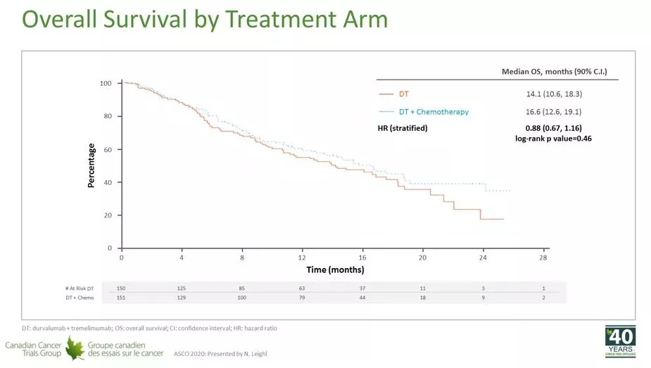 研究结论:在双免疫治疗的基础上进一步联合化疗未能改善患者预后。
