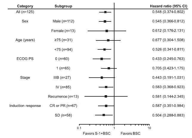 编者按:近期,美国癌症协会旗下的Cancer杂志发表的最新研究显示,S1联合铂类药物诱导治疗后,继续给予S1维持治疗,可以给患者带来一定程度的PFS获益。