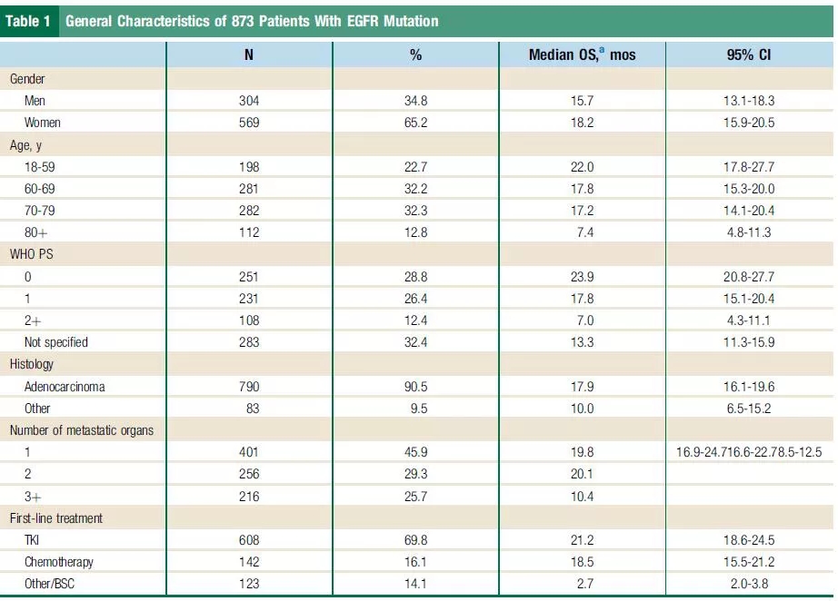 三款药物疗效的差异在脑转移患者中表现的尤其明显,有脑转移的患者,接受吉非替尼、阿法替尼和厄洛替尼治疗的中位OS分别为14.5个月、15.0个月和26.1个月,与厄洛替尼相比,吉非替尼在这部分患者中的疗效更差。