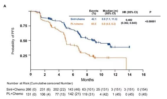 在未经治疗的驱动基因阴性的非鳞、非小细胞肺癌的中国人群中,培美曲塞联合铂类药物化疗的基础上,进一步联合信迪利单抗,可以延长患者的PFS且安全性可控。