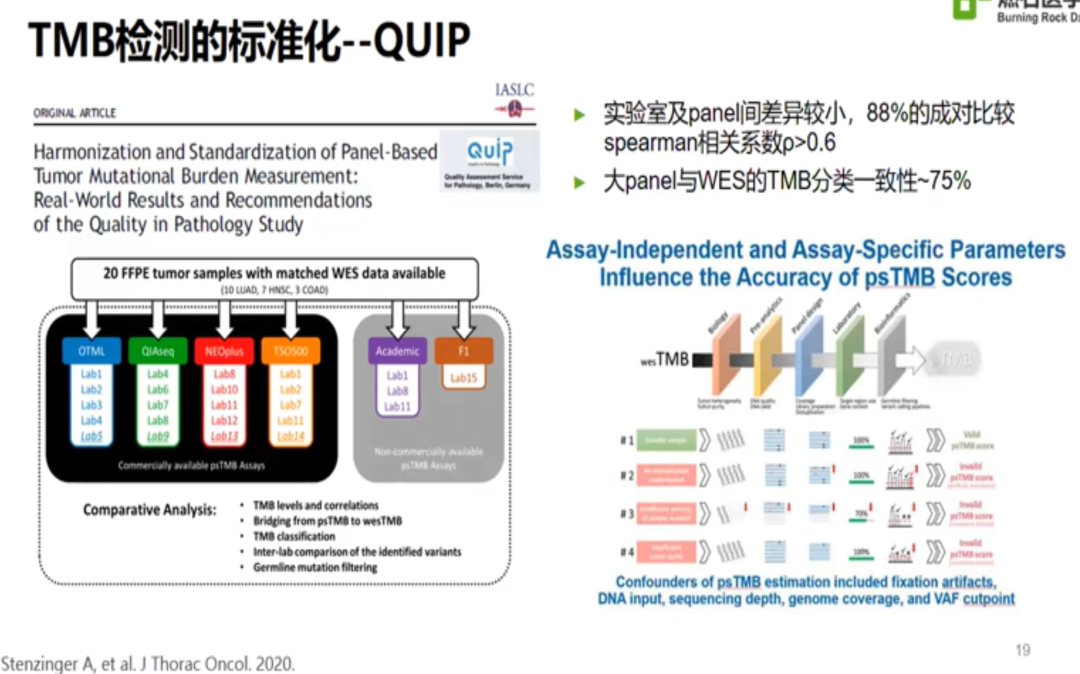 而对于TMB检测的标准化,我国官方机构也在进行相应的尝试,希望能够尽快的有统一的质控标准,以期各检测机构与之对齐。这不仅仅需要机构进行性能验证,也需要继续临床验证。最终才能与特定药物绑定,对免疫治疗药物产生明确的疗效预测价值。