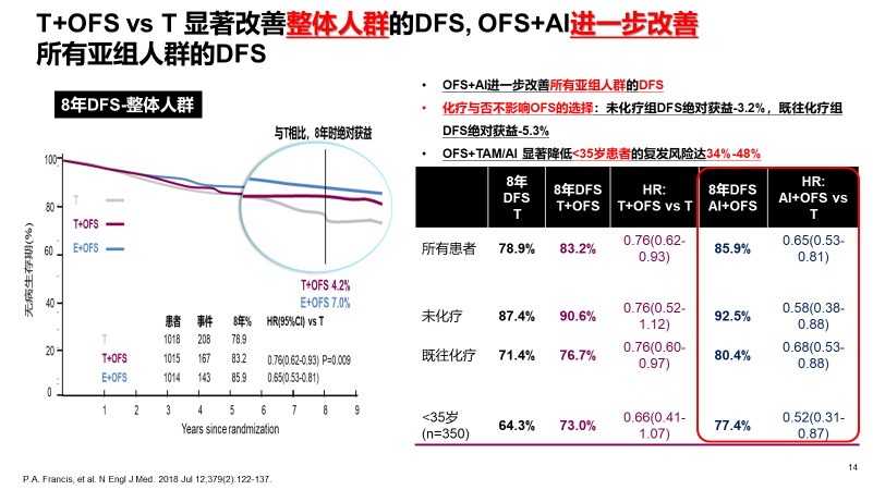 1 FRANCIS P A, et al.NEJM, 2018, 379(2): 122-372 Pagani O, et al. 2014 ASCO Abstract LBA1.3 Matteo Lambertini et al. J Clin Oncol 36.20184 ATLAS, Lancet 2013;381: 805-16.5 Micheal Gnant, et al. 2016 SABCS S1-5.6 Goss P, et al. ASCO 2016,Abstract LBA17 Vivianne Tjan-Heijnen, et al. 2016 SABCS S1-038 Gnant M et al. SABCS 2017 S3-019 Blok EJ. et al. 2016 SABCS S1-04