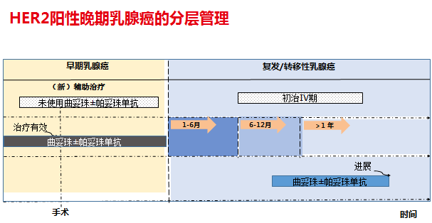 总之,HER2阳性晚期乳腺癌的治疗分层管理是关键,根据患者肿瘤情况,一般状态以及既往治疗情况,选择合适的治疗药物和手段,能够给患者带来更多的获益。
