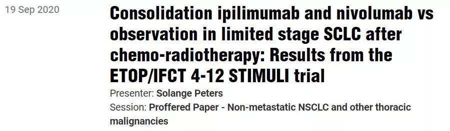 局限期SCLC同步放化疗后的巩固治疗:Ipilimumab联合Nivolumab vs. 临床观察(摘要号:LBA84)