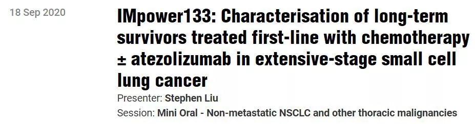IMpower-133:可从Atezolizumab联合EC方案持久获益的广泛期SCLC患者的临床病理特点(摘要号:1781MO)