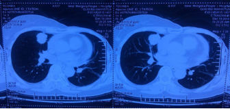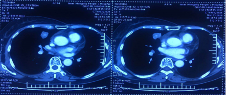 2016年11月,患者出现不适,复查PET-CT提示:1.右肺中叶内侧段结节,伴代谢增高,考虑恶性,转移可能性大。2.左肺上叶尖后段结节,伴代谢增高,考虑转移。未作治疗,继续随访。