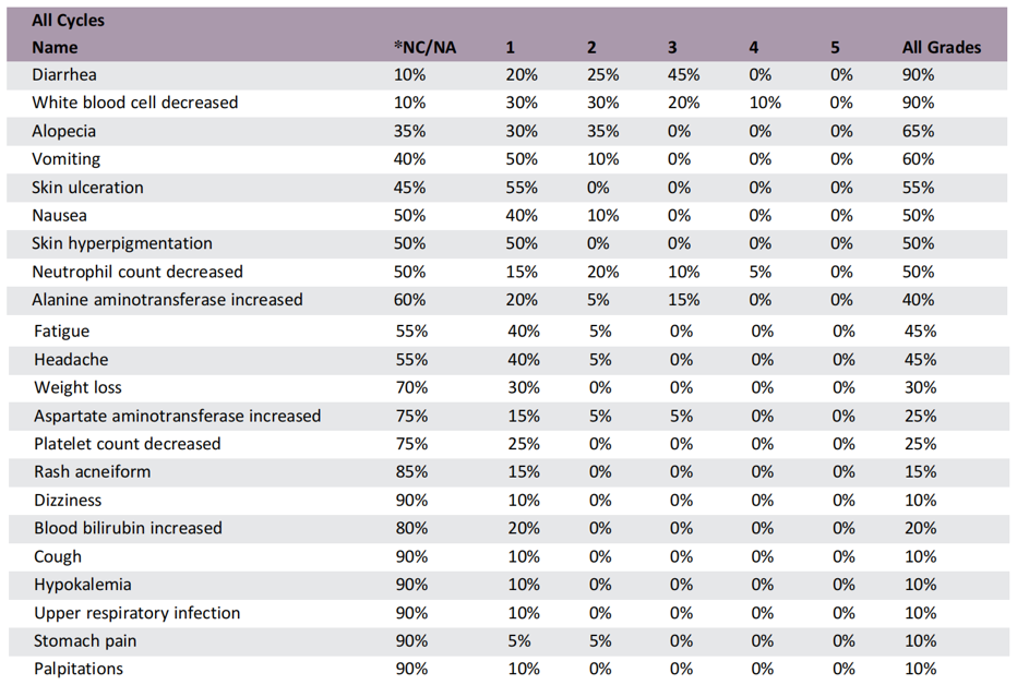 在安全性方面,最常见的不良反应为腹泻(90%)和白细胞计数降低(90%),其次为脱发(65%)、呕吐(60%)、皮肤溃疡(55%)等;最严重的不良反应为4级白细胞计数降低(10%)和中性粒细胞计数降低(5%);无5级不良事件发生。在治疗过程中,所有患者对治疗剂量均可耐受,没有患者因AEs而中断治疗。1例患者在第7周期治疗期间因3级腹泻而减少吡咯替尼剂量,但最终仍获得pCR。