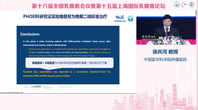 徐兵河教授汇报了吡咯替尼联合卡培他滨优于拉帕替尼联合卡培他滨的PHOEBE临床研究,该研究首次将吡咯替尼与拉帕替尼进行头对头比较,奠定了吡咯替尼在中国HER2阳性晚期乳腺癌治疗中的二线地位。但目前随着T-DM1的上市,吡咯替尼尚未与其头对头比较,对于HER2阳性乳腺癌患者的二线治疗仍存在一定疑问。不仅如此,NALA研究(来那替尼+卡培他滨对比 拉帕替尼+卡培他滨治疗经治的HER2阳性转移性乳腺癌)入组人群和PHOEBE研究的入组人群有一定重合性,NALA研究也证实了奈拉替尼优于拉帕替尼。奈拉替尼在中国上市后,HER2阳性晚期乳腺癌的二三线治疗也有了新的选择。
