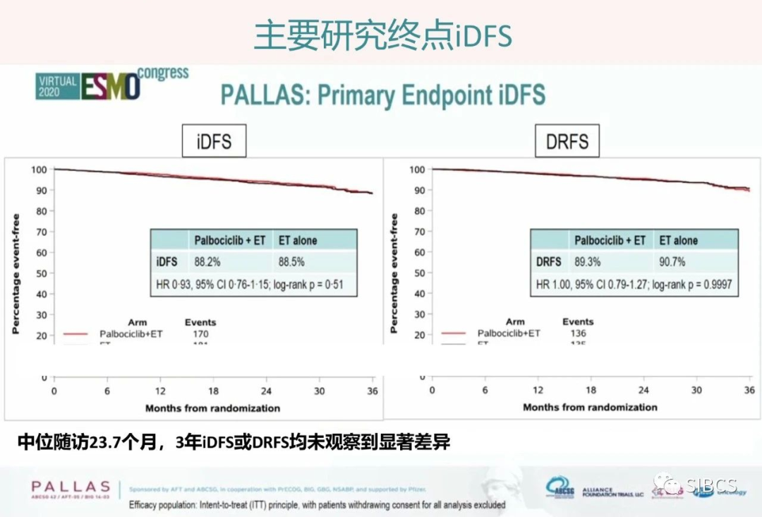 今年的ESMO大会报道了辅助治疗领域的PALLAS和monarch E研究,两项研究有一定的一致性,均探索了CDK4/6抑制剂在早期HR+/HER2-乳腺癌患者辅助治疗中的疗效和安全性。PALLAS研究应用palbociclib,得到的是阴性结果,而monarch E研究应用abemaciclib得到了阳性结果。为什么相似的试验设计却得出不同的试验结果呢?