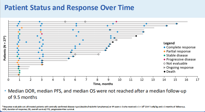 根据入组条件,共有31例患者,对其中对15例接受了≥3个月的axi-cel治疗的患者进行中期分析。