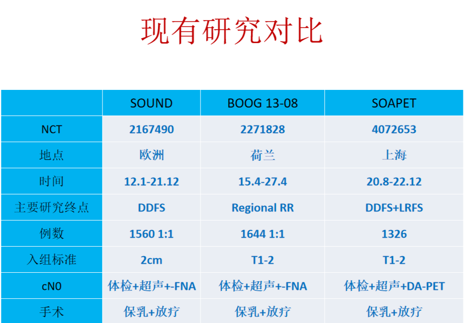 图4 三项尝试豁免前哨活检的前瞻性研究对比