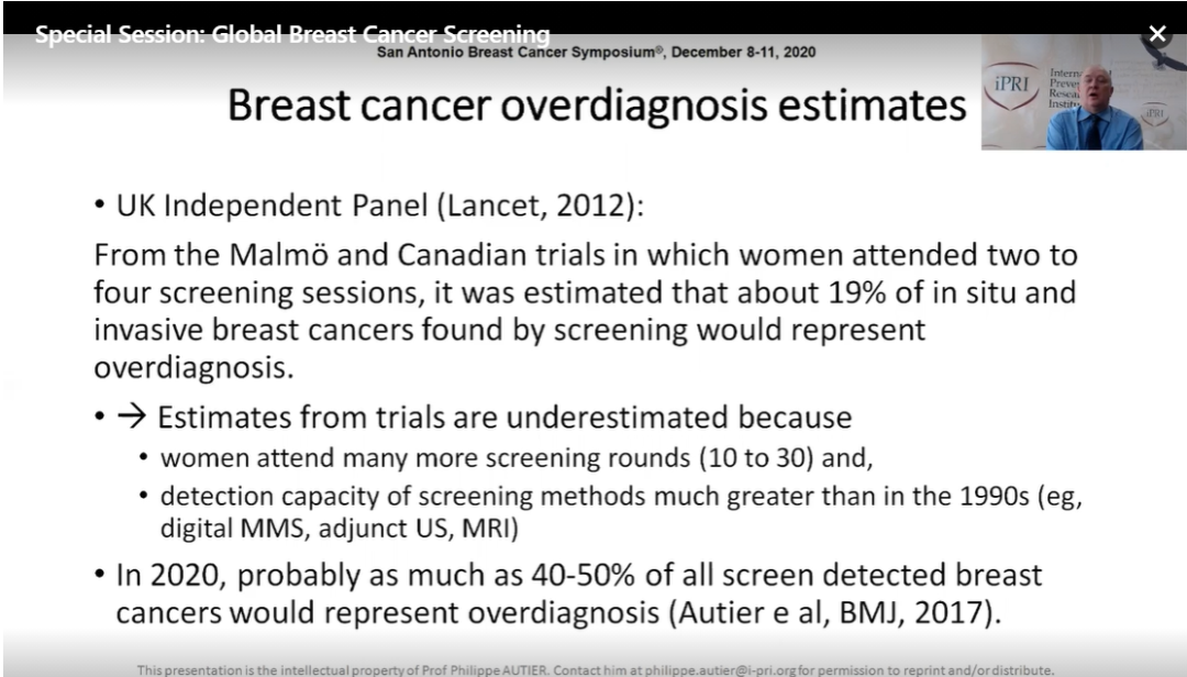 SABCS开幕首日:Philippe Autier博士报告——权衡乳腺癌筛查的利弊:提高乳腺癌筛查的效益,减少其危害是必要的