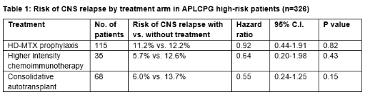 表1:接受HD-MTX并不降低CNS复发风险