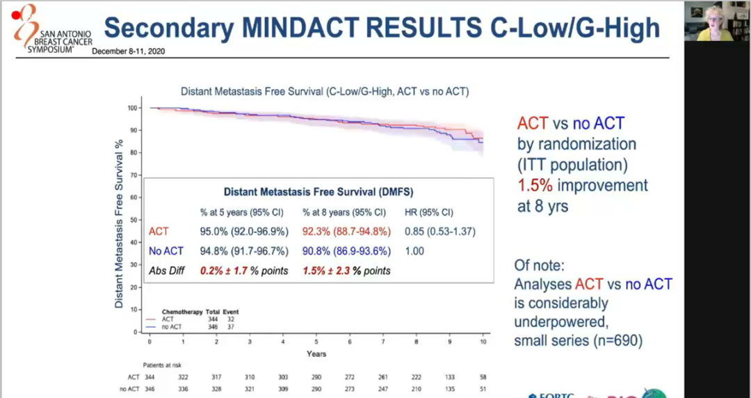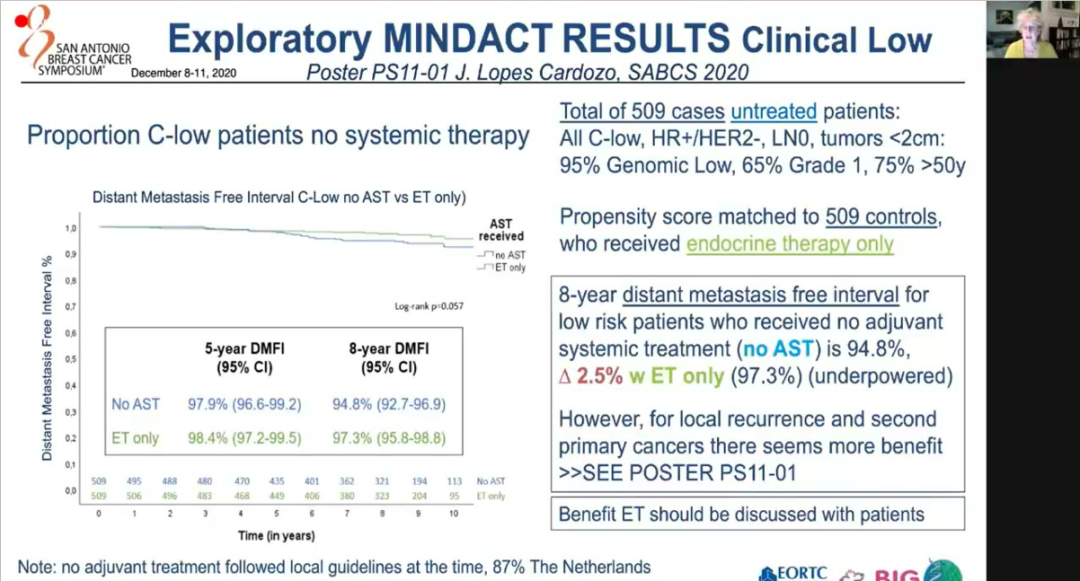 GS4-11. 多低才算低风险:MINDACT临床试验更新了临床低风险患者和按基因组特征、年龄和淋巴结状态分层的患者的结果和治疗获益情况