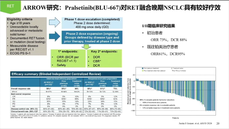 这一基因同样在NCCN 2020第四版的中,增加了这一靶点检测的必要性,目前这一靶点也有不少药物正开展研究,包括①LIBREETO-001:Selpercatinib(LOXO-292)