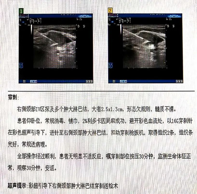 2019-04-09 经过超声引导下右侧颈部淋巴结穿刺活检术,病理:小细胞癌转移,考虑源自肺。