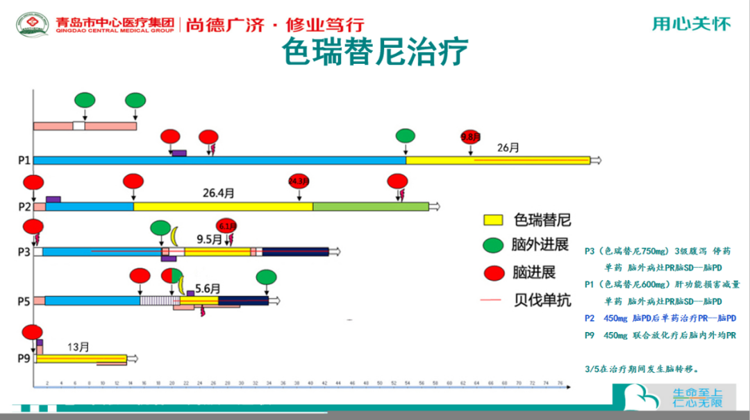 在后续治疗过程中,色瑞替尼750mg副作用较为明显,但随餐450mg则耐受性较高,而布加替尼、阿来替尼表现出较好的颅内控制率的同时副作用较为温和