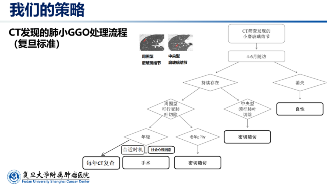 ▲陈海泉提出肺小GGO处理流程的“复旦标准”
