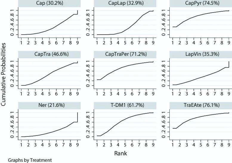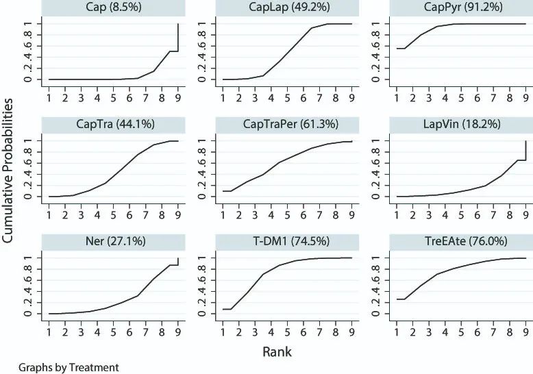 因此在临床实际工作中,对经曲妥珠单抗治疗出现进展的HER2阳性乳腺癌患者,医生会面对多种可选方案。目前每个研究都只是特定一种方案或两种方案的直接比较。对于每个特定的患者选择哪种治疗方案,并没有证据将多种方案进行汇总后的比较。我们做这个网状meta分析也是为了就这个问题给临床医生提供更多的信息参考。