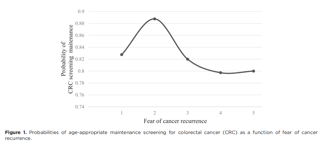 图1.年龄适宜的结直肠癌(CRC)维持筛查作为癌症复发恐惧的函数的概率