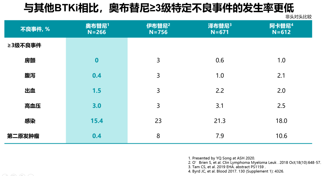 图1.各类BTK抑制剂的不良事件发生率[16]