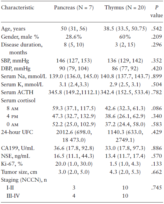 表2. ACTH分泌型pNET和TNET患者的临床特征