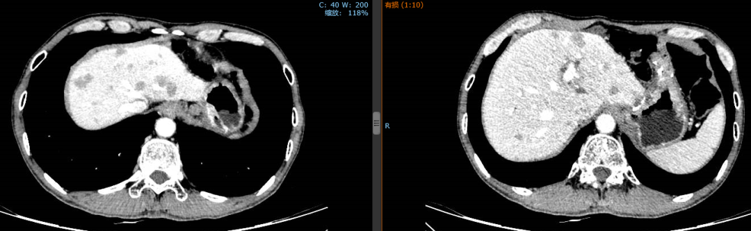 实验室检查:血常规,肝肾功能,肿瘤标记物均正常;复查胃镜正常;影像学检查后述。