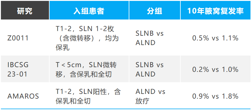 表1. cN0/SLN+患者避免腋窝清扫的3项试验