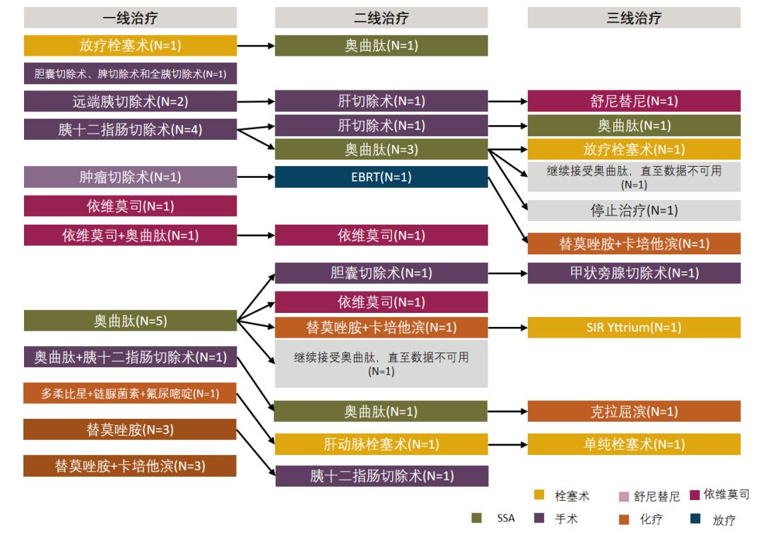 [1] Benson III A B, Broder M S, Cai B, et al. Real-world treatment patterns of gastrointestinal neuroendocrine tumors: A claims database analysis[J]. World journal of gastroenterology, 2017, 23(33): 6128.[2] Kulke M H, Benson A B, Dasari A, et al. Real‐World Treatment Patterns and Clinical Outcomes in Advanced Gastrointestinal Neuroendocrine Tumors (GI NET): A Multicenter Retrospective Chart Review Study[J]. The oncologist, 2019, 24(8): 1056-1065.[3] Herring M, Huynh L, Duh M S, et al. Real-world treatment patterns in advanced pancreatic neuroendocrine tumors in the era of targeted therapy: perspectives from an academic tertiary center and community oncology practices[J]. Medical Oncology, 2017, 34(5): 88.