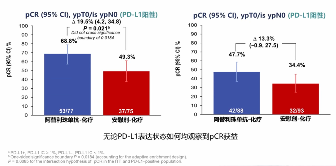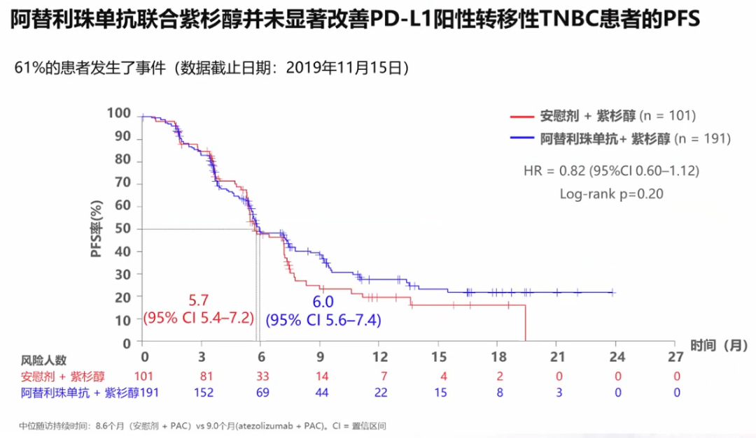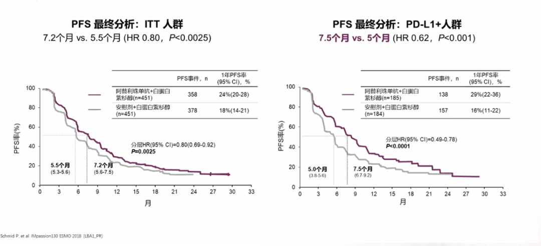而与之设计相似的IMpassion 131研究却得到了阴性结果,无论在PD-L1阳性人群还是在总人群中,均未看到患者获益,还应进行更多相关探索。