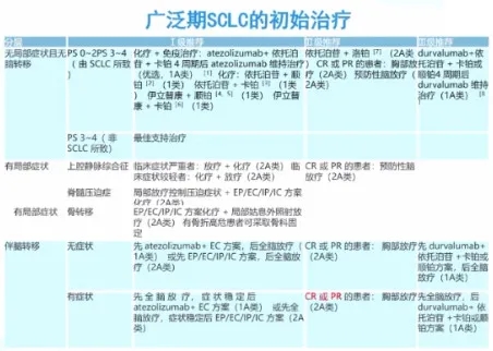 对于伴随脑转移有症状患者,II级推荐CR或PR患者采用胸部放疗(2A类)。