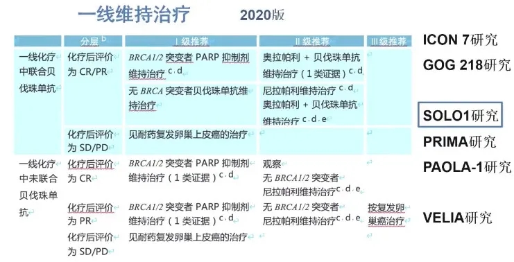 2021版的指南更新主要出现在卵巢癌的一线维持治疗、铂敏感/耐药复发患者的治疗推荐,以下介绍具体的更新内容。