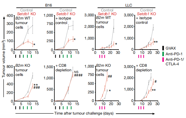 编者按:表观遗传失调是抗肿瘤治疗中细胞免疫逃逸的重要特征之一,针对表观遗传调控靶点的探索有望提高肿瘤对免疫治疗的敏感性,增强免疫检查点抑制剂的疗效。来自麻省理工学院-哈佛大学Broad研究所、麻省总医院、布列根和妇女医院的研究人员利用CRISPR-Cas9技术在动物模型中对影响免疫检查点抑制剂疗效的表观遗传调控因子进行了筛选,发现H3K9甲基转移酶SETDB1或许在肿瘤免疫逃逸过程中发挥重要作用,该蛋白有望成为免疫治疗的候选靶点。该项研究的成果最新发表在期刊Nature上。
