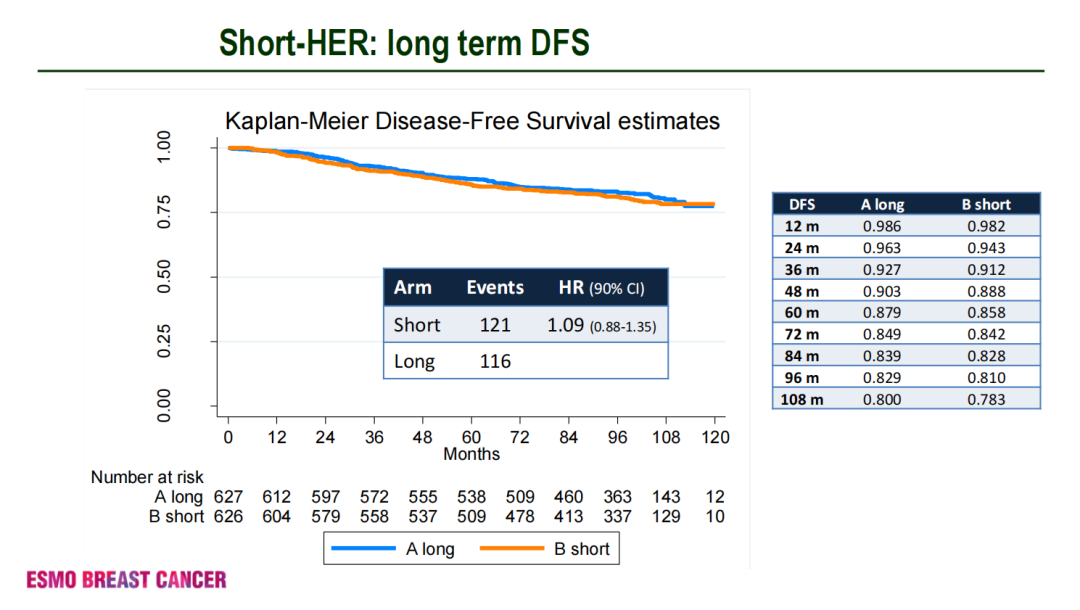 2021 ESMO BC丨ShortHER研究8.7年长期结果披露,中低危人群或可获益于短疗程方案