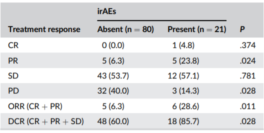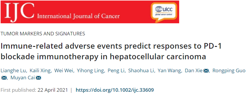 参考文献:Lu L, Xing K, Wei W, et al. Immune‐related adverse events predict responses to PD‐1 blockade immunotherapy in hepatocellular carcinoma[J]. International Journal of Cancer, 2021.