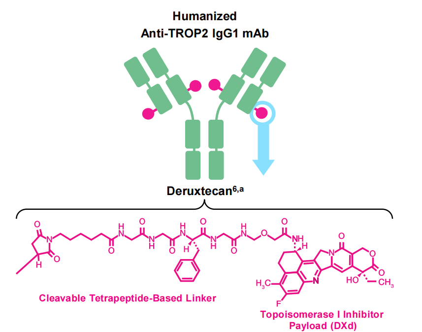 Dato-DXd是一种ADC,由人源化的抗TROP2 IgG1单抗通过稳定的四肽基剪切连接物偶联到有效负载的拓扑异构酶Ⅰ抑制剂(DXd)上。一项正在进行的Ⅰ期TROPION-PanTumor01 (NCT03401385)研究显示,Dato-DXd在经过大量治疗的转移性NSCLC患者(pts)中具有令人鼓舞的抗肿瘤活性。这里报道的是mTNBC的初步结果;该研究的招募正在进行中。