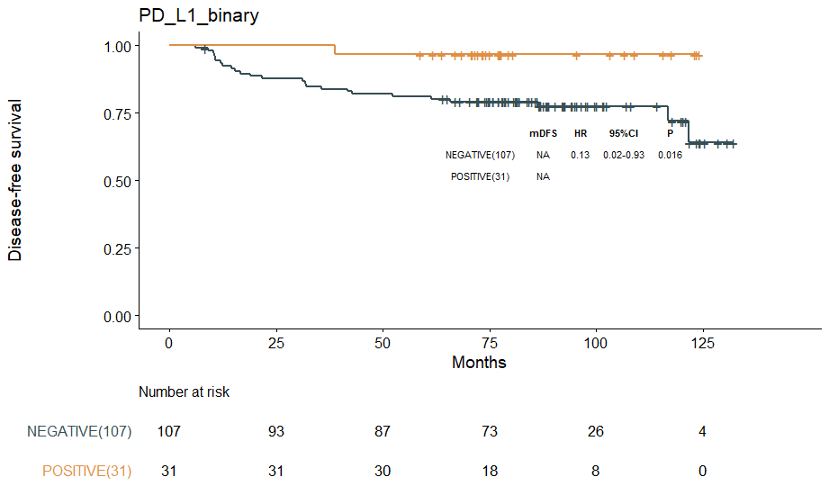 Figure 3. DFS for PD-L1 positie and PD-L1 negative in group.