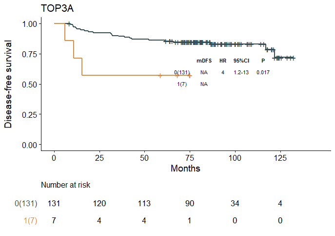 Figure 4. DFS for mutated TOP3A and wild-type TOP3A group.