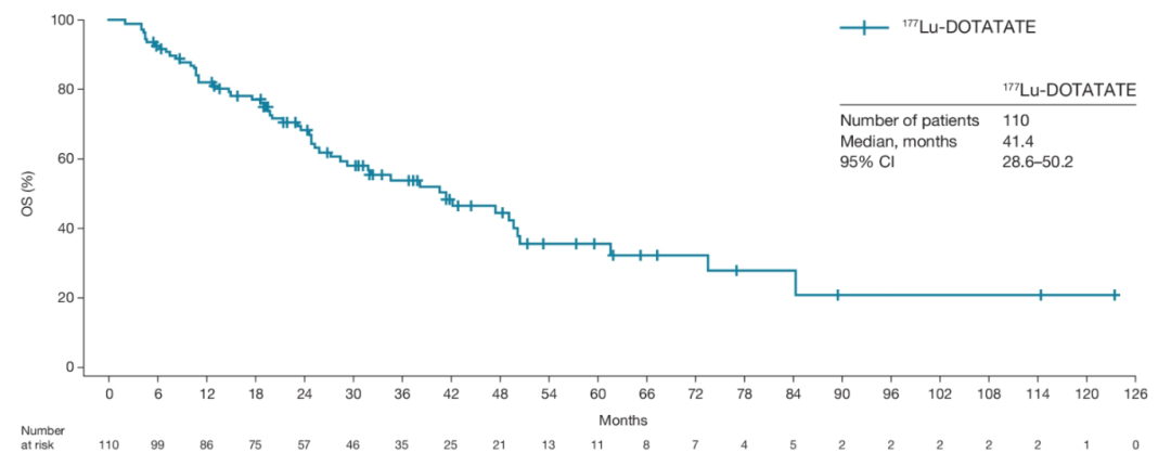 从2012年9月入组第一个病例至今,九年过去了,时间足以给出答案。NETTER-1研究中位随访时间近77个月,其次要研究终点OS(总生存时间)于2021 ASCO公布,虽然只是一个POSTER(摘要号:4112),但饱含了NET专家们“择一事终一生”的恒心与努力,其结果同样熠熠生辉,值得思考。
