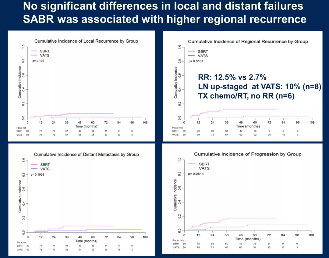 局部和远处复发无差异,SABR组的区域复发率更高