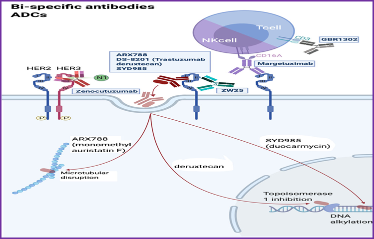 1998年,曲妥珠单抗被批准成为首个实体肿瘤靶向治HER2+乳腺癌的药物,其显著改善了这部分患者的疾病进展时间、提高客观缓解率、改善总了生存,从此开启了“曲妥珠时代”。随着临床研究以及医保政策的推动,HER2阳性患者已经从曲妥珠单抗走进了曲帕双靶时代,进一步改善预后。但并非所有HER2阳性的所有患者能从此得到治愈,难治高危的患者不可避免走向耐药甚至复发转移。寻找从靶点机理、药物结构等多个角度尝试进行突破, 例如抗体功能优化、双特异性抗体、ADC改进等等,堪称为这些患者的治愈之路陆续点燃希望之光与治愈之光。