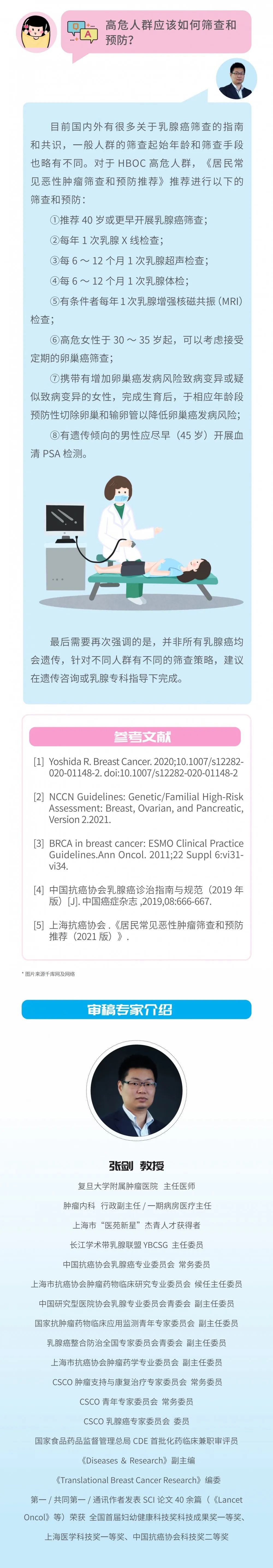 编者按:在“一问医答”的问题征集中,读者“戀戀吥忘~”反映称其家中有乳腺癌亲属,担心乳腺癌是否会遗传,是否需要以及怎样进行乳腺癌筛查。提出这类问题的读者还真不少。为此,我们邀请复旦大学附属肿瘤医院的乳腺癌专家张剑教授,解答读者心中的疑问。