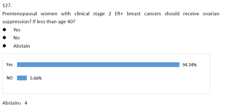 2017年St.Gallen专家共识指出考虑使用OFS的因素包括:年龄≤35岁、接受辅助化疗后仍为绝经前激素水平、淋巴结转移数≥4 个。随之时间的变迁,2021年St. Gallen专家对于OFS的共识度、接受度及认可度越来越高。超94%的专家认为年龄<40岁、临床分期为2期ER+绝经前患者应该接受OFS[5]。