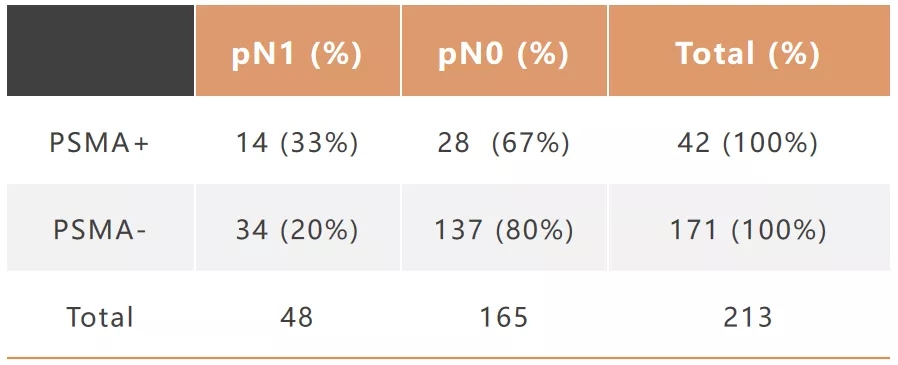 表1. PSMA+/-及pN1/0的比例