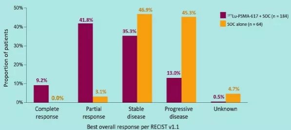 结论:对于接受雄激素受体靶向治疗和化疗后进展的mCRPC患者,在SOC的基础上加用177Lu-PSMA-617可延缓影像学疾病进展并延长OS,耐受性良好。本研究的结果支持177Lu-PSMA-617作为mCPRC患者一种新的治疗选择。